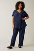 • Evans Curve Navy Blue Plisse Wide Leg Trousers