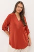 Evans Curve Orange Zip Front Jersey Blouse