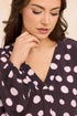 Elevate your wardrobe with a new style this autumn. Crafted from a breathable woven fabric, this Evans top is perfect for layering this upcoming season. It features a spot print, long balloon sleeves and pleated front detail, finished in a swing style for a flattering fit. Simply style with smart trousers and heels for an elegant everyday look. Model is 5'10.5"/178cm and size UK 16/EU 44.