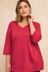Evans Curve Red V-Neck Cotton Top
