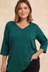 Evans Curve Teal Green V-Neck Cotton Top