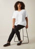 Experience true comfort with this essential t-shirt. Crafted from a lightweight modal-rich fabric, this t-shirt was designed with comfort in mind. It features a v-neckline, short sleeves and is complete in a longline style. Pair with jeans and trainers for a fuss-free everyday look. Model is 5' 8" / 173cm and size UK 18/EU 46.