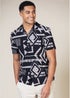 French Connection Black Tribal Print Short Sleeve Shirt