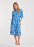 French Connection Blue Floral Print Short Sleeve Midi Shirt Dress