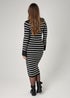 French Connection Grey Cosy Striped Midi Dress with Bell Sleeves