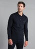 French Connection Navy Cotton Long Sleeve Polo Shirts 2 Pack