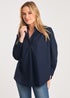 French Connection Navy Cotton Long Sleeve Poplin Popover High-Low Hem Shirt