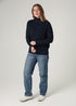 French Connection Navy Cotton Mozart Popcorn Knit High Neck Jumper