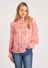 French Connection Pink High Neck Long Sleeve Floral Frill Keyhole Blouse
