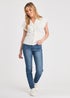 This crepe V-neck blouse from French Connection is a stylish wardrobe staple. Features button fastening, tie back, short sleeves and ruching at the front. Style with jeans, skirts, smart trousers: this blouse goes with everything!