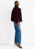 Gini London Angora Red Funnel Neck Button Up Faux Fur Jacket