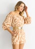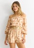 Gini London Beige Abstract Belted Bardot Viscose Playsuit