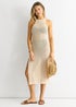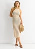 Gini London Beige Crochet Knit Bodycon Slit Dress
