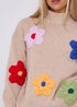 Gini London Beige Floral Appliqué High Neck Oversized Jumper