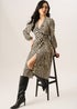 Gini London Beige Geo Print Assymetric Hem Wrap Midi Dress
