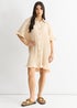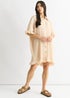 Gini London Beige Plisse Frill Detail Oversized Shirt Dress