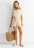 Gini London Beige Utility Elasticated Waist Linen Playsuit