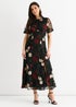 Gini London Black Angel Sleeves Embroidered Occasion Midi Dress