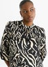 Gini London Black Animal High Neck Satin Blouse