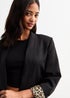 Gini London Black Contrast Animal Edge to Edge Blazer