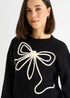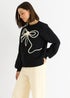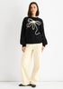 Stay stylish and comfortable with our Black Contrast Bow pattern oversized Jumper. The bold contrast bow pattern adds a touch of casual elegance to this comfortable oversized jumper. Perfect for those looking to make a statement while staying cozy.