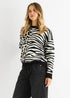 Gini London Black Contrast Zebra Animal Knit Jumper