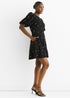 This black mini dress blends bold style with comfort. Featuring stretchy fabric and playful puff ball sleeves, it moves with you for an easy, relaxed fit. The sparkling diamante trim adds a touch of glamour, making it perfect for casual outings or statement nights.