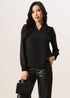 Learn moreAdd a touch of femininiy to your smart outfit with this fabulous long-sleeve blouse. Made from a chic black dobby chiffon material, it is flawlessly lined and features sheer sleeves with shirred cuffs. The standout feature is the frilly henley neckline, which can be styled as a deep V-neckline as well. Created for ultimate versatility, this eye-catching essential is a must-have for your wardrobe.