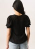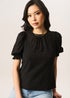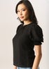 Gini London Black Dobby Chiffon Shirred Cuff Blouse