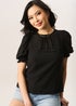 Get that basic yet chic vibe on point with our black top. This top with dobby details is made from a chiffon material which is perfect for your on the go days. Team with your black jeans and a pair of heels to elevate this off-duty look.