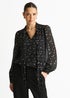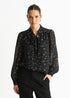 Gini London Black Dobby Star Chiffon Tie Neck Blouse