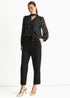 • Gini London Black Dobby Star Chiffon Tie Neck Blouse