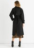 Upgrade your wardrobe with this versatile and stylish Black Double Breast Longline Belted Trench Coat. Its classic design complements any outfit, while the adjustable belt adds a touch of comfort and casual flair. Perfect for any occasion, stay chic and comfortable in this must-have coat.
