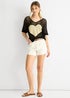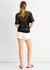Gini London Black Fish Net Heart Pattern Crochet Top
