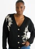 This Black Floral Appliqué Wool Mix Cardigan offers a perfect blend of comfort and bold style. Made from a soft wool mix, it keeps you warm while the striking floral appliqué adds a distinctive, casual flair. Ideal for layering, this cardigan brings effortless confidence and cozy comfort to your everyday look.