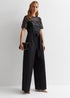 Gini London Black Floral Lace Sequin Belted Occasion Jumpsuit