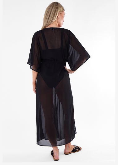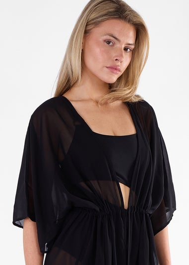Gini London Black Flowy Open Front Beach Cover Kimono