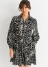 Gini London Black/ Gold Zebra Belted Shirt Dress