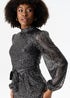 Gini London Black High Neck Long Sleeves Belted Sequin Dress