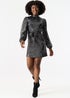 Turn heads in this black high neck dress with long sleeves and a belted waist. The sequin detailing adds a touch of glamour to a classic style, making it perfect for any fashion-forward event. Elevate your wardrobe with this stunning statement piece.
