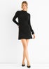 This stylish black high neck dress features stud embellishments and hot fix details, adding an edgy flair to your wardrobe. Made with stretchy fabric, it offers a comfortable and flattering fit. Perfect for a night out, this mini dress is sure to turn heads and make a bold fashion statement.