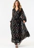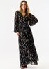 Gini London Black Metallic Print Full Sleeve Maxi Dress