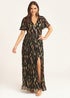 This black dreamy dress is gonna steal all of the stares at that upcoming special occasion. Featuring a multi shining printed material with angel sleeve design, side slit and a v neckline wear with lace-up heels for a look we are loving.
