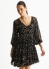 Gini London Black Multicolored Spot Viscose Clipped Jacquard Mini Tiered Dress