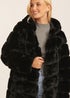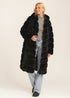 Bring on the Black Panelled Hooded Longline Fur Coat with a hook and eye fastener for the new season. On chilly days, this hooded coat's midi length is ideal for maintaining a fashionable appearance. For the ultimate winter appearance, wear this with a cozy sweater, leather pants, and some boots.