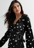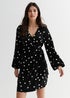 Learn moreTransition from season to season in these eye-catching Black Polka Dot Mini Wrap Dresses. Featuring a matching tie belt and long balloon sleeves, wear it with strappy heels for a decent yet stylish look.