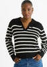 • Gini London Black Recycle Stripe V Neck Collar Knit Jumper