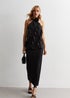 Glam your style this season with our new black ruffle top designed in a versatile colourway and stylish halter neckline, this top must be your favourite out going pair. Style up with a jeans, trainers for a daytime look or glam up with trousers and stilettos at night.