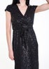 If you're not sure what to wear for the party, this Black Sequin Belted Midi Wrap Dress will be your closest friend. Making sure it is suitable for any occasion, you will stand out, shimmering among the crowd. Put on strappy heels and a matching bag for modest elegance.