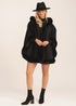 Gini London Black Soft Fur Trim Hooded Oversized Cape